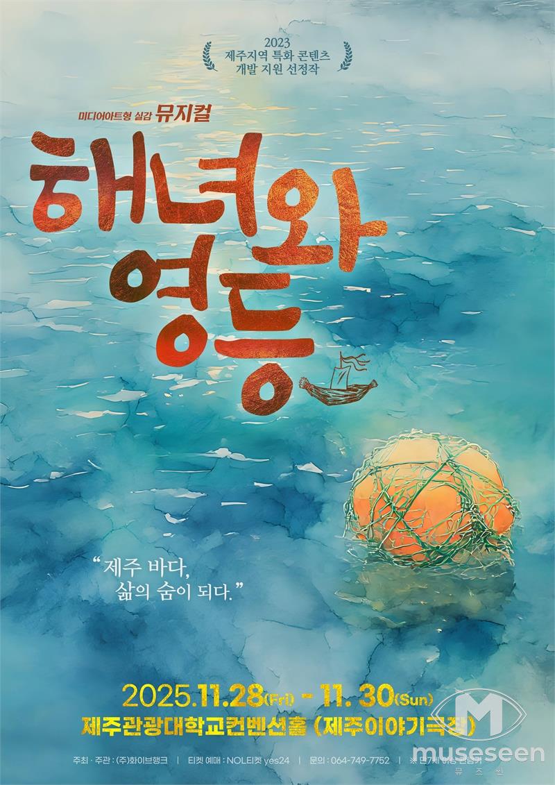 [뮤즈씬] 2023년 제주지역 특화 콘텐츠 개발 지원작으로 선정돼 초연된 미디어아트형 실감 뮤지컬 ‘해녀와 영등’이 2025년 한층 확장된 무대와 깊어진 서사로 돌아온다. 2025년 8월 재연 프리뷰를 거쳐 11월에는 현대 기술과 전통 신앙이 어우러진 리메이크 버전으로 다시 관객을 만난다.이번 작품은 유네스코 인류무형문