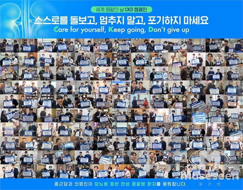 [뮤즈씬] 종근당(대표이사 김영주)은 3월 13일 세계 콩팥의 날을 맞이해 전국 의료진들과 함께 만성 콩팥병의 조기 진단에 대한 인식을 제고하고 환자들의 관리와 치료를 응원하기 위한 CKD 캠페인을 진행했다.종근당은 현재 바이엘코리아와 2형 당뇨병 동반 만성 콩팥병 치료제 케렌디아(성분명 피네레논)를 공동 판매하고 있으
