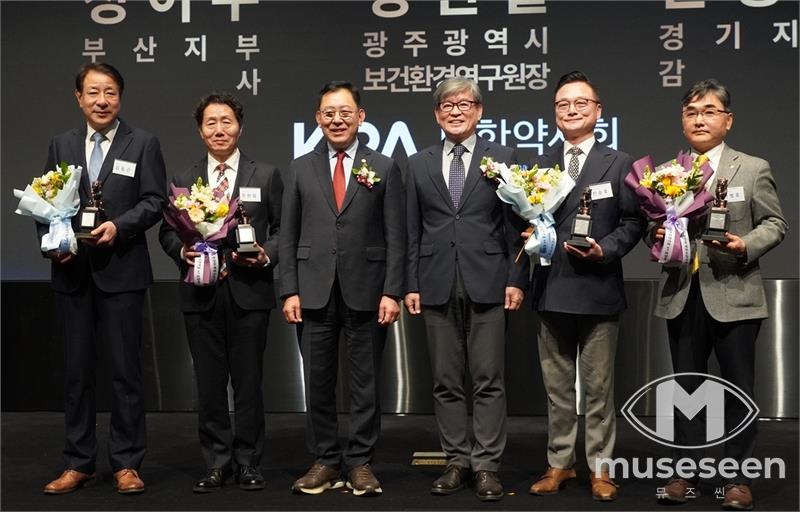 [뮤즈씬] 한독(대표 김영진, 백진기)이 대한약사회(회장 권영희)와 11일 서울 엘타워 그랜드홀에서 제54회 약연상 시상식을 개최하고 국민보건 향상에 기여한 약사 5명에게 상을 수여했다.‘약연상(藥硏賞)’은 한독과 대한약사회가 1970년 공동으로 제정한 상이다. 평소 약사윤리강령을 성실히 이행하고 국민보건 향상과 지역사