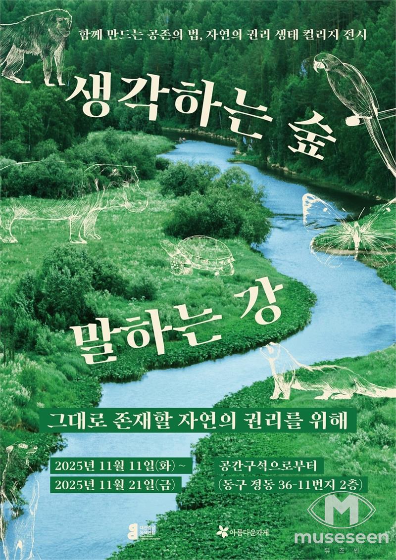 [뮤즈씬] 대전충남녹색연합은 오는 11일 부터 지구의 모든 생명이 태어난 그대로 존재하고 살아갈 권리를 지녔음을 뜻하는 자연의 권리를 시각예술로 표현한 전시 ‘생각하는 숲, 말하는 강: 그대로 존재할 자연의 권리를 위해’를 개최한다.‘생각하는 숲, 말하는 강’ 전시는 지난 4월부터 10월까지 진행한 ‘함께 만드는 공존의