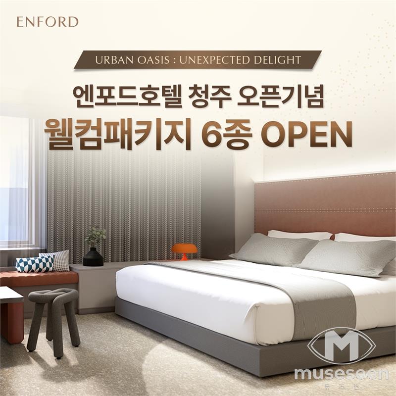 [뮤즈씬] 충북 청주에 위치한 엔포드 호텔이 리모델링을 마치고 리오픈을 기념해 6가지 객실 패키지를 선보인다고 20일 밝혔다.이번 패키지는 고객의 다양한 라이프스타일과 취향을 고려해 기획됐다. ▲웰니스 부대시설 이용권과 조식이 포함된 ‘엔포드 스테이’ ▲기본 패키지에 웰컴 드링크 혜택이 추가된 ‘웰컴 엔포드’ ▲호텔 시