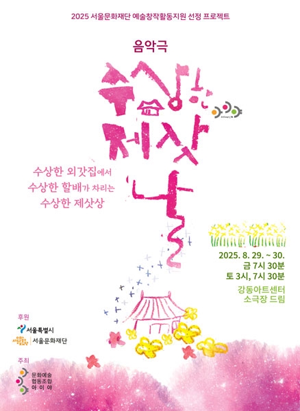 [뮤즈씬] 조부모, 부모, 자녀 3대가 함께 관람할 수 있는 음악극 ‘수상한 제삿날’이 8월 29일부터 30일까지 이틀간 강동아트센터 소극장 드림에서 개막한다.‘수상한 제삿날’은 문화예술협동조합 아이야가 선보이는 생애주기별 공연 ‘수상한 3부작’ 시리즈의 완성작으로, 전통의식 제사가 갖는 현대적 의미를 살피며 삶과 죽음,