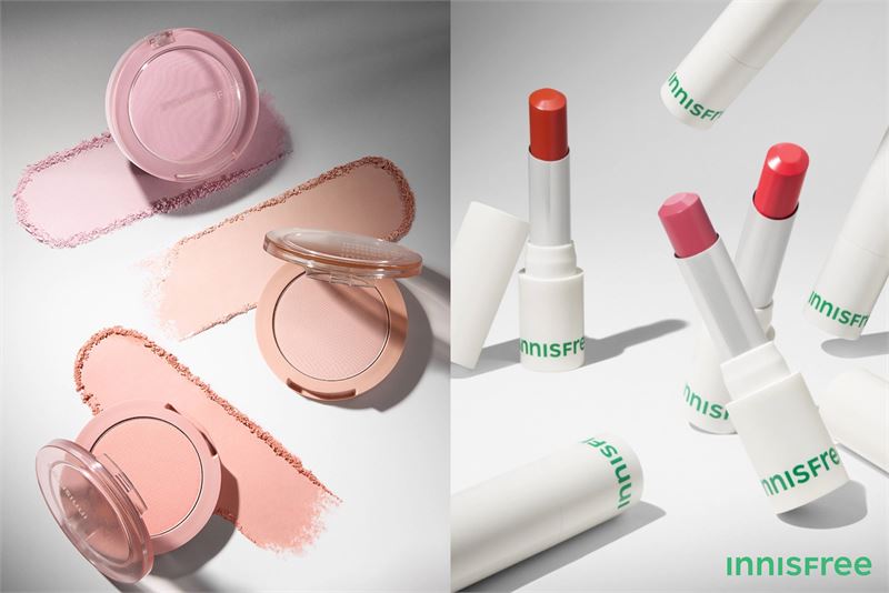 ▶ 은은한 듯 화사하게 메이크업을 완성해주는, 이니스프리 – 실키 파우더 블러쉬 & 듀이 글로이 립스틱