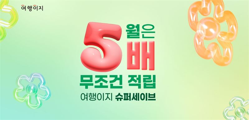 아울러 ‘5월은 5배 무조건 적립, 5직 여행이지에서만’이라는 콘셉트로 패키지 상품을 예약한 고객 전원에게 적립금을 5배 적립해 주는 슈퍼세이브를 진행한다. 어떤 상품이든 관계없이 이달 중으로 예약을 완료하면 최대 20만 원 내에서 상품 가격의 5%를 적립할 수 있다.