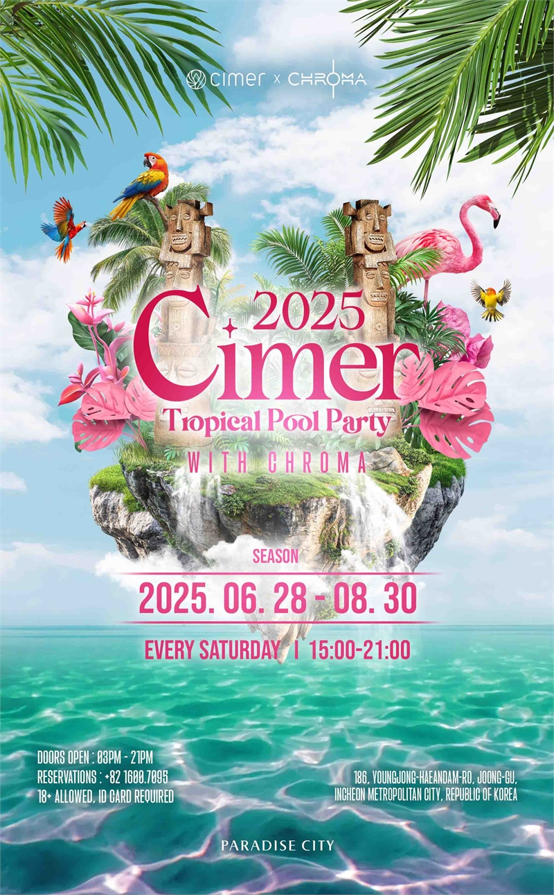 [뮤즈씬] 파라다이스시티가 여름을 맞아 오는 28일부터 8월 30일까지 ‘뉴트로(New+Retro)’ 콘셉트의 ‘2025 씨메르 트로피컬 풀파티 위드 크로마’를 개최한다.