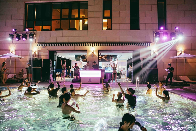 ‘씨메르’ 1층 야외 수영장 전체를 뉴트로 분위기로 꾸미고 국내외 아티스트들의 화려한 공연으로 가득 채운다.